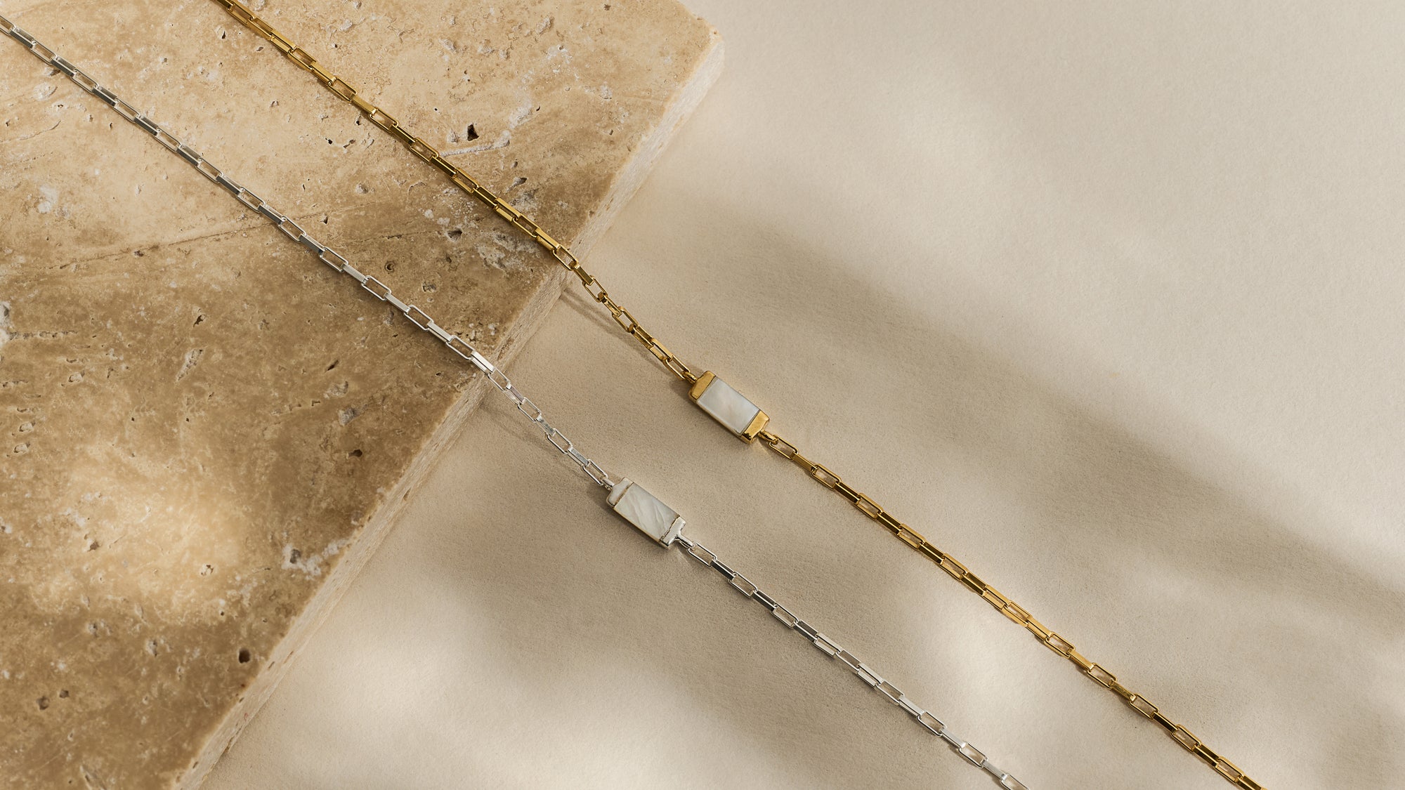 Discover our gold bracelets, crafted from recycled sterling silver and finished in 18ct gold plating. From delicate satellite chains to meaningful birthstone designs and lustrous freshwater pearls, each piece is designed for effortless layering and timeless elegance.